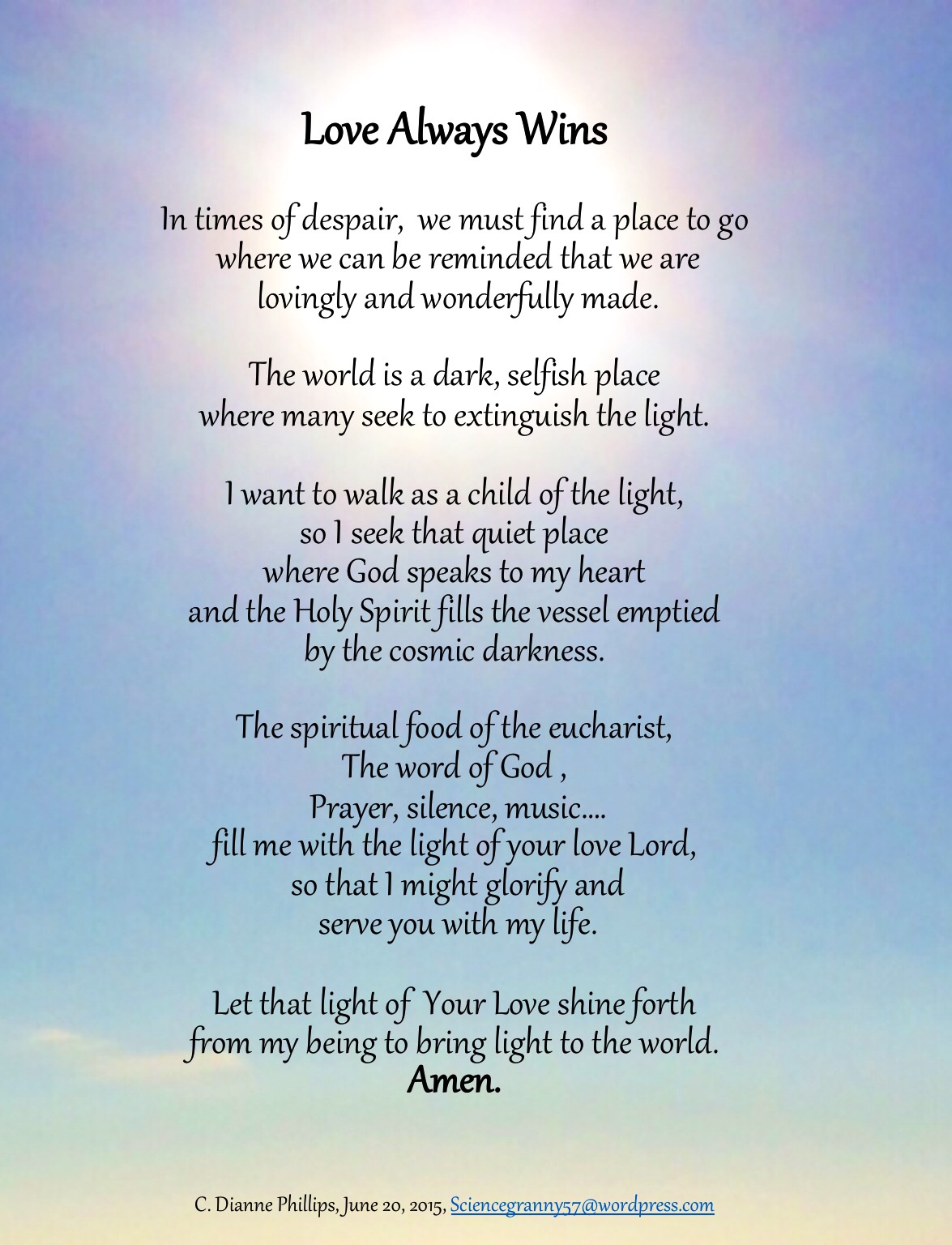 Pingback: Love Always Wins – personal reflective prayer inspired by the Holy Spirit | Sciencegranny